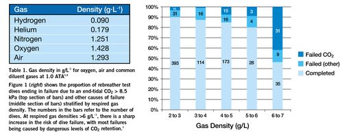 Gas density is a simple concept with a complex but high-yield solution for two factors divers face: work of breathing (WOB) and carbon dioxide (CO2) elimination. Gas density is a measure of mass per unit volume in grams per liter (g/L), while WOB is an integral of pressure as a function of volume typically measured in kilopascals (kPa) or joules per liter (j/L).