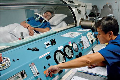A few hours after landing in Singapore, I arrived late at night at the recompression chamber at the superb Tan Tock Seng Hospital, which DAN had recommended and vetted. The hyperbaric facility team was waiting for me and provided me with recompression treatment.
