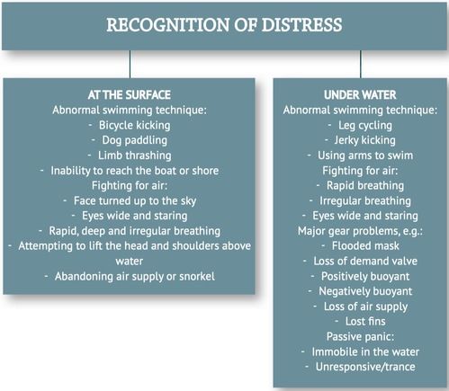 WARNING: Exercise caution when approaching a distressed diver at the surface. A panicky victim may attempt to grab you, cling to you or even climb onto your head!