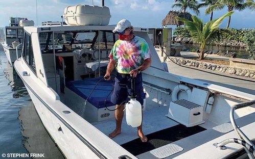 Even if cleaning products are labeled as environmentally friendly, never dump them overboard or pour them onto the ground. Dispose of them as specified on the product’s SDS.