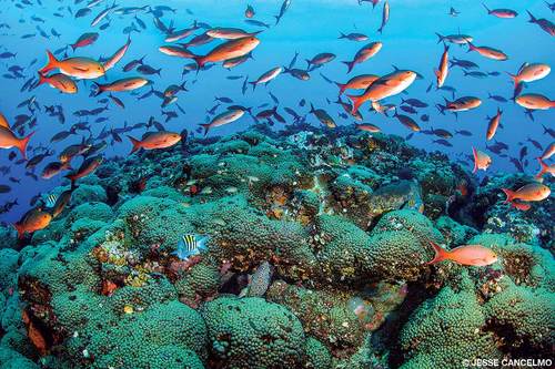 The Madracis coral formation at Stetson Bank’s buoy three is a signature site at FGBNMS and often loaded with schools of creolefish. Photo by Jesse Cancelmo