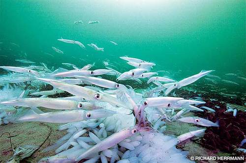 Watch a California market squid spawning event in this video.