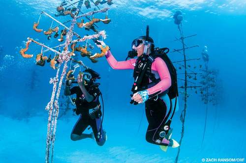 BGDF scholars clean coral at the coral nursery with the Coral Restoration Foundation.