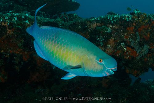 Parrotfish in Sodwana Bay, photographed with one strobe.