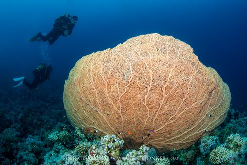 I used long strobe arms to light this huge sea fan.