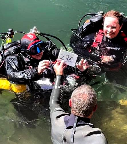 All divers had to be searched by an Impartial witness before entering the water, including myself, to ensure that no one was harboring any fake tags or any other items that may be able to be used to cheat on the attempt.