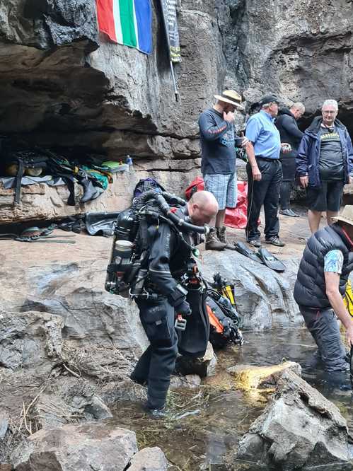 In terms of the team, although not a hard-and-fast rule, the general premise was that only those busy with diving operations at any particular time, were next to hole, else they generally moved off to higher ground. On the record dive day however, the Surface Coordinator, Jan Vorster ran a tight ship and only those people who absolutely needed to be at the water’s edge were permitted there, else they had to move off, until called upon by him.