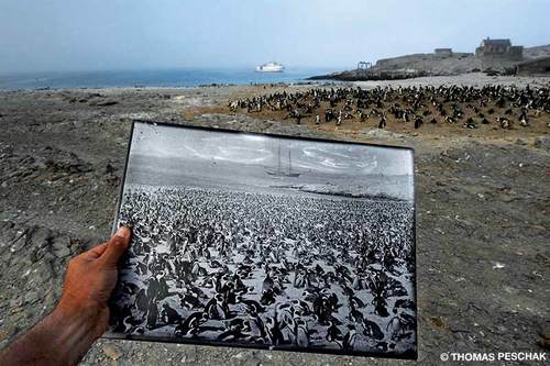A photograph from the 1890s shows a once-massive African penguin colony on Namibia’s Halifax Island in stark contrast to the scene I photographed in 2017. The demand for their guano (bird excrement used for fertilizer) and eggs were principal drivers of the dramatic population decline from more than 100,000 to about 2,000 today. Ongoing overfishing of sardines, the penguins’ preferred prey, and climate change prevent these charismatic seabirds from recovering to historical numbers.