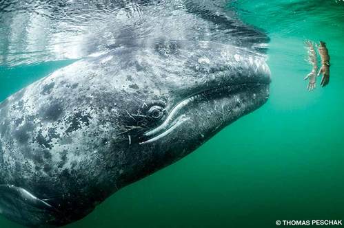 Gray whale mothers in Baja California’s San Ignacio Lagoon once weaponized their powerful tail flukes to smash whaling boats and protect their calves. The scene now could not be more different, and gray whales have made a remarkable comeback. In just a single century, our relationship with them went from being dominated by fear and violence to engaging in mutual curiosity. The whales determine their interactions with boats full of whale-watching enthusiasts and will often surface right next to visitors to have their heads scratched. These interspecific interactions began to occur in the 1970s, and mothers seem to be passing on this new aspect of whale culture to their calves.