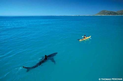 When I began work on a book about great white sharks almost 20 years ago, I had no idea it would yield my most well-known image. I worked with scientists at the White Shark Trust for more than 10 months to create novel images of great whites off South Africa. When they struggled to track sharks in the shallows, I suggested using a kayak as a less-obtrusive research platform.
