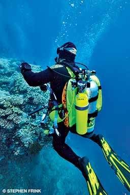 The third option is diving sidemount style. With two tanks you will achieve genuine redundancy: You will have two separate gas supplies, each with an independent regulator. Although most divers use 80-cubic-feet (2.3-cubic-meter) or larger cylinders, recreational sidemount divers may prefer smaller tanks. Sidemount divers will get the best results with a custom fitting. Tanks must be well-balanced for your unique body, and your hose routing should result in clean streamlining. Training for using the sidemount technique is available to recreational and technical divers, but be sure to find an instructor with plenty of experience.
