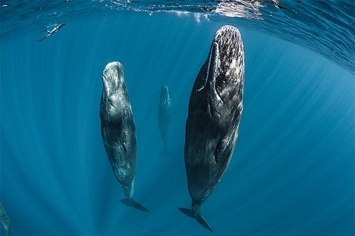 The sperm whale is the animal of superlatives: They are the largest toothed predator on the planet, they make the loudest sound in the animal kingdom (at around 200 decibels underwater), and they have the largest brain of all living things. They are intelligent, articulate, and social. It is truly mind-blowing to freedive with them and be accepted by the group for sometimes hours at a time.