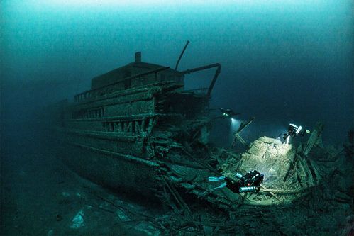 Divers explore the bow of the Florida in Lake Huron, Michigan. Photo by Keith C. Flood