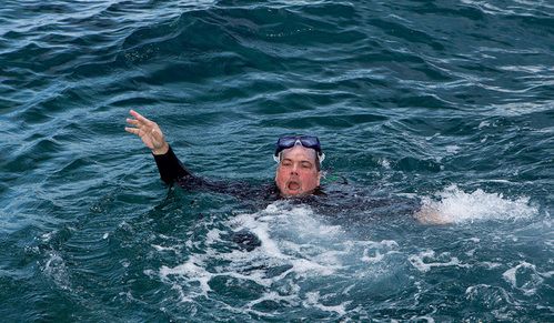 The popular conception of what drowning looks like is not accurate. Unlike this photo, drowning people usually can’t call out for help, and there is very little splashing or waving. Drowning is actually a very quiet and undramatic action. Photo by Stephen Frink