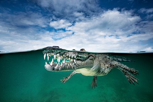 It’s not often you remember the exact moment you push the shutter button, but I remember every detail of this frame — the sweat beading on my forehead, trying not to move too much as I balanced my huge dome port, and mumbling to myself about not messing this up. It was during my first trip to Cuba with Michael Aw and Ocean Geographic, and it was my first time being in the water with a saltwater crocodile. The experience was sobering yet forever memorable.
