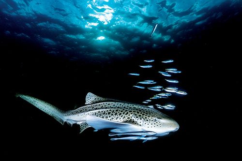 Julian Rocks is off Byron Bay, the easterly point of Australia’s mainland. Once a year it hosts a massive aggregation of leopard sharks (known in the U.S. as zebra sharks). Every year from February to April, hundreds of them occupy a few small dive sites around the rocks — it’s an underwater photographer’s dream. This shot was after a tremendous day of diving. The sun was low in the sky, and the water was getting dark. I was heading back to the boat, but I couldn’t resist chasing this one last frame as the entourage passed.