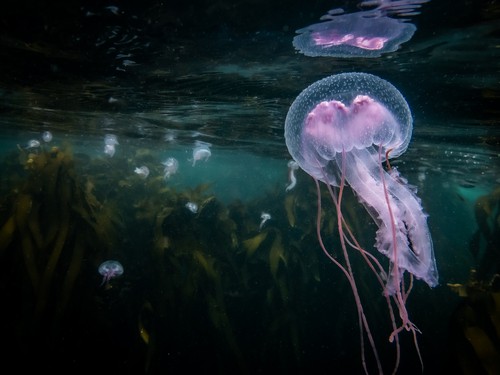 After the next few months lagging the group as I ducked down with a terrible action camera,searching for light and kelp, I decided to swap swimming for snorkelling. That way, I could move at my own pace, taking in this crystalline world, learning about its creatures, and photographing little scenes of beauty. I graduated to a better, compact camera; became obsessed with jellyfish; and eventually took a freediving course to help me delve deeper into this strange and inexplicable voyage. How had I arrived here? Here, of all places? The very nub of all my fears and hurts!It is something I still can’t explain.