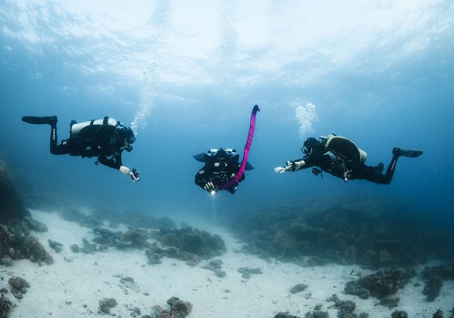 I always refer to a solid dive team as a collective brain, interacting and seamlessly integrated, the power of a diver multiplied by the number of team members. The collective brain can perform tasks and create a level of safety and comfort beyond the reach of a single recreational diver, making team diving the perfect tool for project-oriented diving.
