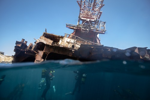 Divers can access the cavernous stern section of the BOS relatively quickly, and some of the steel superstructure underwater makes for exciting images.