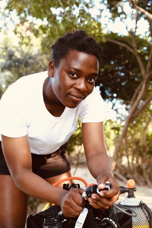 She started diving in 2016 at the age of 17 years while on a training internship program at Peri-Peri Divers in Tofo,Inhambane.