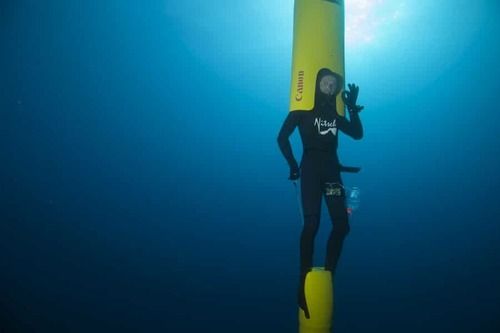 Free diving can be done with various supporting equipment, but it must be done on a single breath – without use of the scuba equipment. There are numerous free-dive categories, such as with fins and without fins, length, static, and so on, with their individual records, but the most impressive by far is the so-called No-limits apnea (NLT), where any sort of equipment can be used to help diver descend and ascend. Naturally, this category is responsible for the deepest free-dive ever made.